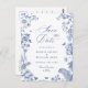 Elegant Blue French Toile Wedding Save the Date Postcard