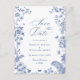 Elegant Vintage Blue French Garden Floral Wedding Save the Date Postcard.