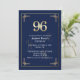 Elegant Blue Gold 96th Birthday Party Invitation