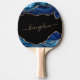 Elegant Blue Gold Agate Script Name Ping Pong Paddle