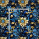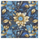 Elegant Blue & Gold Boho Chic Floral Pattern Fabric