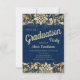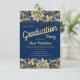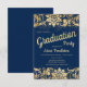 Elegant Blue Gold Floral Glitter Graduation Party Invitation