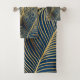 Elegant Blue Gold Leaf Design Bath Towel Set