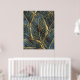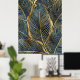 Modern luxury blue and gold leaves drawing, perfect for exotic Stylish home decor, unique glam events, and special celebrations. Filled with shimmering faux gold glitter sparkle plant leaves hand Drawn tropic design, creating an unusual gold foil foliage pattern amazing tropical artwork, over a trendy velvet luxury look navy-blue background.