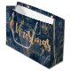 Elegant Blue Gold Marble Effect Merry Christmas Large Gift Bag
