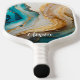 Create your own personalized pickleball paddle featuring custom script calligraphy name and marble blue gold background design.