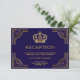 Elegant reception card featuring an elegant gold ornate border and beautiful crown against a dark blue background.