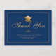 Elegant Blue Gold Script Graduation Thank You Postcard