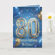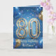 Elegant Blue Gold Sparkly Balloons 80th Birthday Card