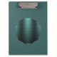 Elegant classy clipboard in dark grey charcoal and blue green with a decorative round floral shape cutout with aqua metallic look gradient.