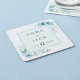 This elegant wedding coaster features delicate watercolor blue florals and soft greenery, beautifully framing the happy newly married couple’s names and wedding date in a classic serif font. Set within a refined botanical frame, this design adds a romantic touch to any garden party table decor. Its pastel soft colour palette and vintage refined style blend rustic elegance with timeless charm, making the coaster a thoughtful memento for your guests to treasure. Perfect for autumn weddings, it complements a botanical wedding table setting gracefully, enhancing the overall ambiance with gentle sophistication and heartfelt appreciation for your guests.