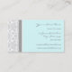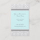Business cards in elegant and modern light pastel turquoise blue, grey and white classic floral vintage damask pattern. Customizable with your contact details, stylish and feminine.