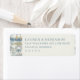 This return address label features a clean, minimalist design with a textured background and an abstract patterned border in soft blue, grey, and beige tones. The layout is vertically oriented, with centred text in a serif font that offers a formal yet approachable feel, harmonizing with the muted colour palette of light greys and whites. The overall style exudes understated elegance and sophistication, making it perfect for formal occasions. Its modern aesthetic focuses on simplicity and clarity, ideal for those seeking a refined touch to their correspondence.
