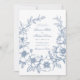 Elegant Blue Hand Drawn Wreath In Bloom Wedding Invitation