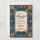 Celebrate in timeless style with this elegant Thanksgiving design featuring golden florals and deep blue botanical accents in an ornate vintage frame. The rich contrast of colours and intricate detailing evoke warmth, abundance, and sophistication — perfect for fall gatherings, family dinners, or formal harvest celebrations. Personalize easily with your own event details.