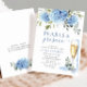 Elegant Blue Hydrangea Floral PEARLS & Prosecco Invitation