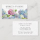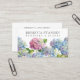 This professional business card features a blue and lavender hydrangea blossoms with your name above in a modern font and your profession. The back of the card has a white background with black typography for your name, profession, address, phone,email and website. The perfect business card for wedding planners and other professionals that want an elegant floral business card. Designed by world renowned artist ©Tim Coffey.