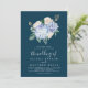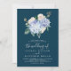This elegant blue hydrangea navy wedding invitation is perfect for a spring or summer wedding. The classic floral design features soft powder blue watercolor hydrangeas accented with neutral blush pink flowers and green leaves.