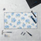 Elegant Blue Hydrangea Pattern Gray Stripe Desk Mat. Bring the timeless elegance of a coastal summer to your space with this delicate hand created art of hydrangea floral overlaid on a classic gray ticking stripe. Perfectly blending high-end garden aesthetics with a breezy East Coast vibe, this desk mat offers a sophisticated touch to your home or office space. Hydrangea design is original to Cross Fox Design.