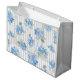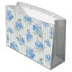 Elegant Blue Hydrangea Pattern Grey Stripe Large Gift Bag