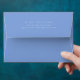 Celebrate your special day with our exquisite Blue Hydrangea Wedding envelopes. Featuring a delicate watercolor illustration of a blue hydrangeas, as the inside printed liner and a line of text to customize in a striking blue hue that complements the floral artwork. Add your return address on the back flap. Original hydrangea artwork only found here. For enquiries about custom design changes by the independent designer please email paula@labellarue.com BEFORE you customize or place an order.