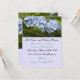 A beautiful hydrangea in a soft shade of blue accented by crisp green foliage. A matching background of soft blue accents wedding information. Customize as desired.