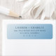 This return address label features a minimalist and elegant design with a soft pastel blue gradient background, transitioning from light to slightly darker shades. The layout is clean and balanced, centered around customizable text in a classic serif font that adds a touch of sophistication. The muted sky blue color palette paired with dark navy gray text creates a serene and refined look, perfect for formal occasions. The absence of additional motifs or decorative elements emphasizes clarity and simplicity, making it ideal for those who appreciate understated elegance.