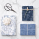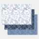 Elegant Blue Monochrome Rustic Winter Botanicals Wrapping Paper Sheet
