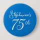 Elegant Blue Monogram 75th Birthday Party Button Pin