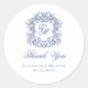 Elegant Blue Monogram Wedding Crest Thank You Classic Round Sticker