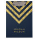 Elegant clipboard featuring faux gold chevron pattern against a blue background that you can personalize with your name Great for office or school.