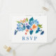 Elegant Blue Peach Floral Wedding RSVP Invitation Postcard