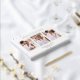Simple and elegant three photo wedding guest book features gold foil personalized wedding text, and can include the wedding couple's names and wedding date, or edited to your own custom message. The back and spine are a classic pastel blue colour, while the front is clean white making a beautiful backdrop for the gold foil typography.