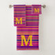 elegant blue and yellow pink stripes pattern monogram bath towel set. custom colourful stripes pattern bath towel set.