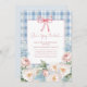 Elegant Blue Pink Floral Bow Gingham Bridal Shower Invitation