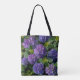 Elegant blue purple magenta green floral hydrangea tote bag