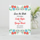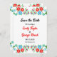 This elegant floral wedding save the date invitation is perfect for a modern summer floral wedding. The romantic design features bloom blue and red roses with elegant black typography on a white background.