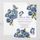 Elegant Blue Roses Butterfly Silver Wedding Invitation