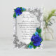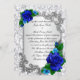 Pretty blue roses and silver leaf pattern frame. This beautiful wedding invitation is a modern and elegant way to invite family and friends to your wedding. Personalize the card by changing the text in the fields provided front and back. You can change font style, size, and colour, as well as paper type and style.