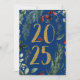 Send your cherished family and friends best wishes for the New Year with this elegant blue 2025 New Year's greeting card. This elegant New Years 2025 greeting card with envelope included features a beautiful blue background with rustic greenery and pretty red berries. A red cardinal sits on the gold number two. Customize the back with a note and your signature for a personalized and unique touch.