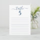 Elegant Blue Script Table Seating Lined Card