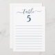 Elegant Blue Script Table Seating Lined Cards for Handwriting Names. The sample is shown 10 lines for handwritten names on a 5x7" size white card with matte finish; other card sizes and styles as well as text/line colours available. ASSISTANCE: For help with design modification or personalization or transferring the design to another product, contact the designer BEFORE ORDERING via the Zazzle Chat MESSAGE tab below or email makeitaboutyoustore@gmail.com.