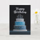Elegant Blue Silver Birthday Cake Card