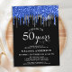 Elegant Blue Silver Black Glitter Drip 50 Birthday Invitation Postcard