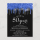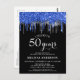 Elegant Blue Silver Black Glitter Drip 50 Birthday Postcard