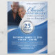 The layout provides space for a featured photo, church name, event title, leadership names, date and time, scripture, and church details. Its clean, structured design ensures all information is presented clearly while maintaining a dignified and uplifting aesthetic suitable for both traditional and contemporary congregations.