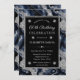 Elegant blue & Silver Glitter Agate 60th Birthday Invitation
