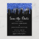 Elegant Blue Silver Glitter Drips Save The Date Postcard
