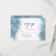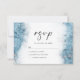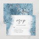 The edges of this elegant modern RSVP card features a light blue watercolor border design in imitation of marble veined with faux silver foil, fading gradually into the white background. The letters "rsvp" appear in charcoal grey handwriting script. The customizable response date and wording are in charcoal grey serif text. The reverse side features a matching blue and silver marble design.