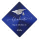 Elegant Blue Silver Personalized Graduation Cap Topper